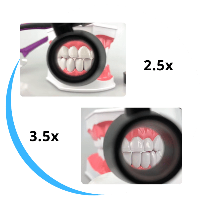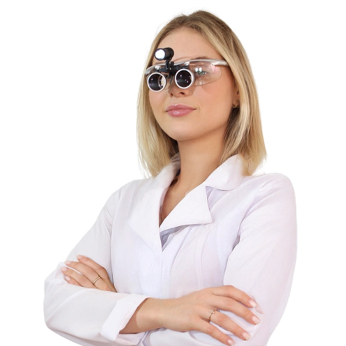 Lupa X1 con Lentes de 2.5x o 3.5x y Lámpara Frontal de 5 Watts